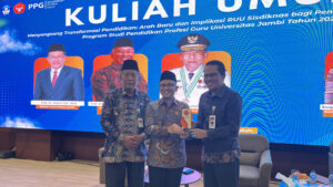 Mendalo – Program Studi Pendidikan Profesi Guru (PPG) Universitas Jambi (UNJA) menyelenggarakan kuliah umum bertajuk “Menyongsong Transformasi Pendidikan: Arah Baru dan Implikasi RUU Sistem Pendidikan Nasional (Sisdiknas) bagi Pendidikan Nasional pada Program Studi Pendidikan Profesi Guru Universitas Jambi Tahun 2025”. Kegiatan ini berlangsung di Gedung UNIFAC UNJA Mendalo dan dihadiri oleh para pemangku kepentingan pendidikan nasional serta civitas akademika Universitas Jambi.